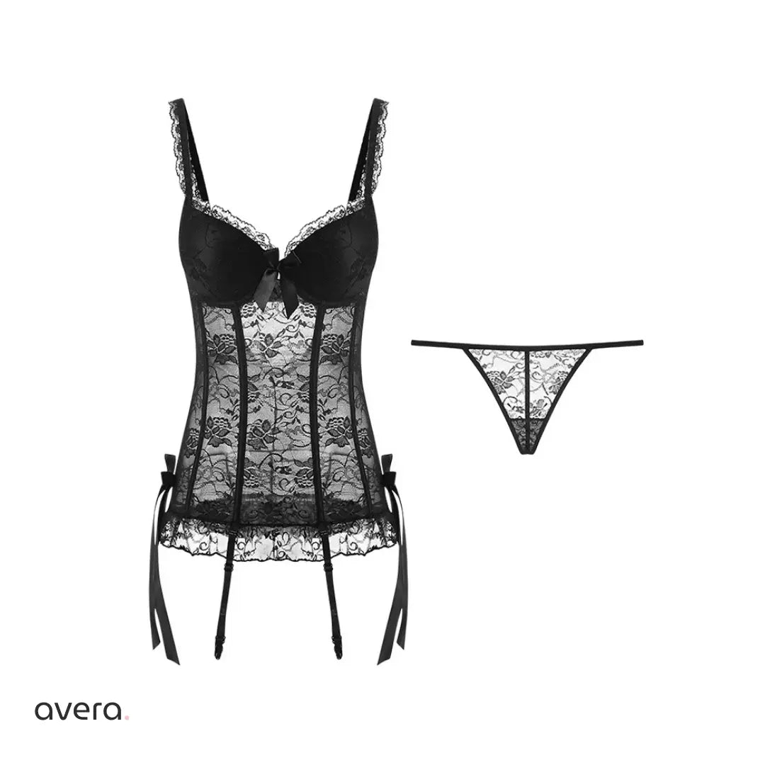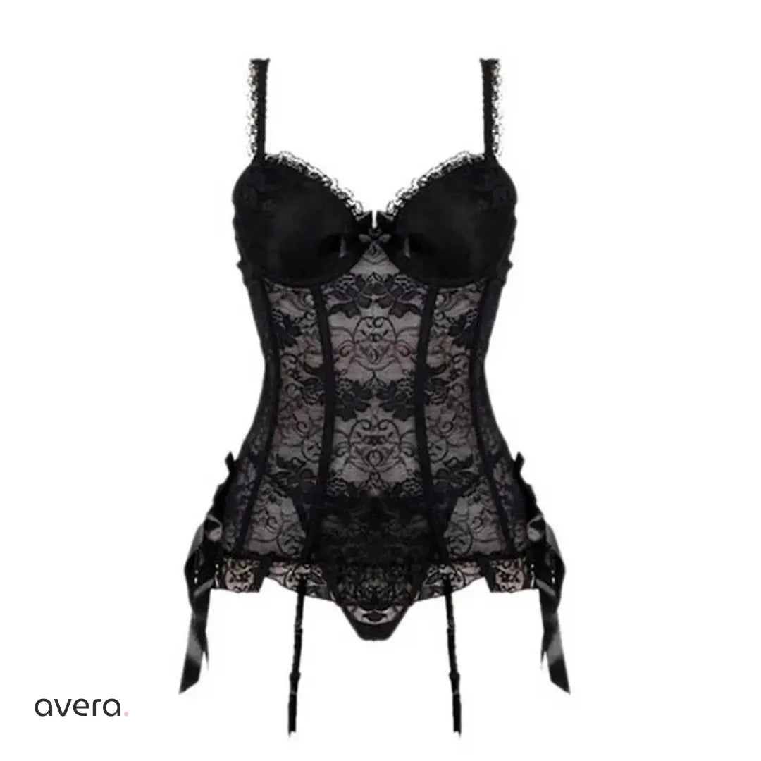 Unleash your confidence with our Elegant Black Lace Corset & Bustier Set, a timeless piece of lingerie that blends allure and sophistication. Designed with high-quality lace, push-up cups, and adjustable garters, this set is perfect for women who want to highlight their curves with elegance and comfort.